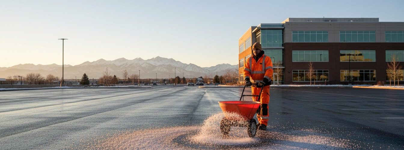 Professional de-icing services for roadways, parking lots, sidewalks, and high-traffic areas to prevent dangerous ice formation.