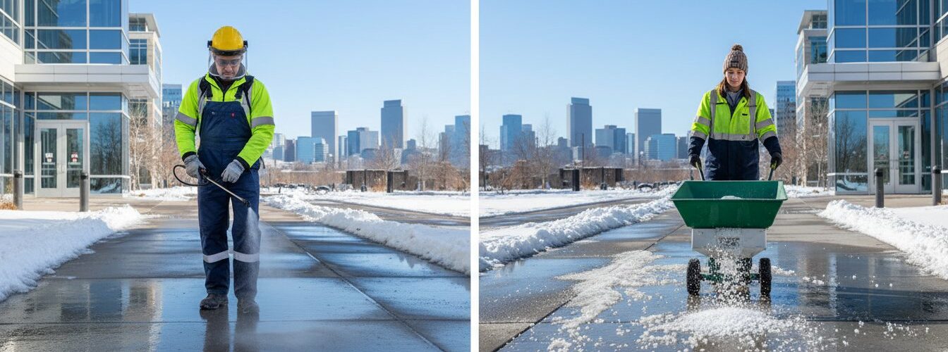 Colorado’s famous sunshine also creates unique challenges for Denver snow removal. Rapid temperature fluctuations can turn cleared snow into dangerous ice within hours, or create heavy, compacted snow that’s significantly more difficult to remove than fresh powder. Our teams are trained to anticipate these conditions and implement appropriate ice management strategies as part of every snow removal service.